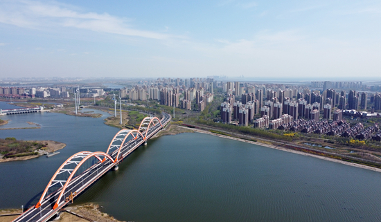 这是4月14日拍摄的中新天津生态城新貌(无人机照片)。新华社记者 赵子硕/摄