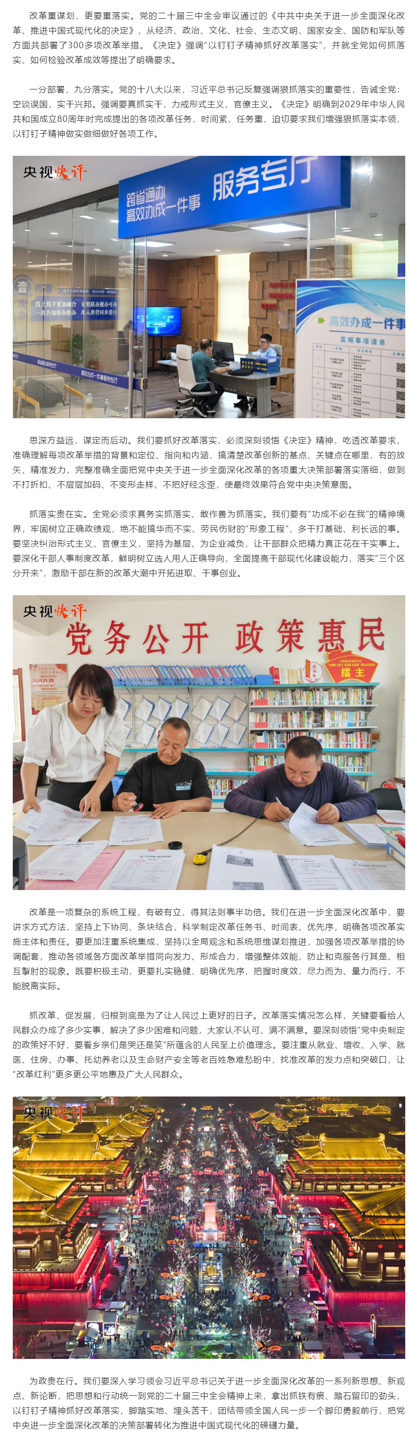 【央视快评】以钉钉子精神抓好改革落实