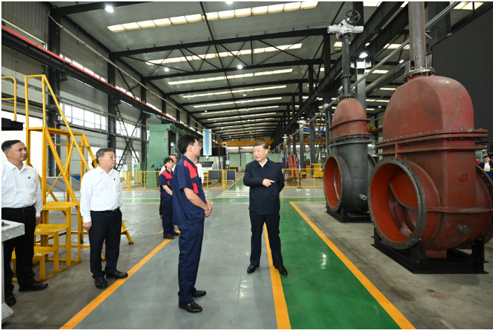 2025年7月7日至8日,中共中央总书记、国家主席、中央军委主席习近平在山西考察。这是7日下午,习近平在阳泉阀门股份有限公司考察。新华社记者 谢环驰 摄