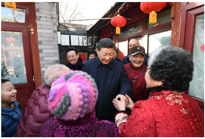 2019年2月1日,习近平总书记来到北京前门东区草厂四条胡同看望慰问群众。新华社记者 谢环驰 摄