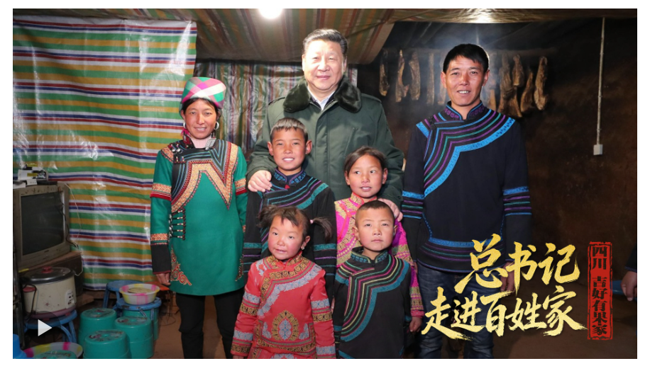2018年春节前夕,习近平总书记来到四川省凉山彝族自治州昭觉县三河村。在村民吉好也求家,他关切地掀开床褥,摸摸被子,仔细察看、询问他们的生活情况。吉好也求的女儿吉好有果当年9岁,给总书记唱了一首歌《国旗国旗真美丽》,总书记带头鼓掌。临走时,总书记对吉好也求一家人说:“看着你们生活一天一天好起来,我很高兴。也希望你们的孩子们健康成长,将来一个一个都很有出息,有文化,有知识。”这一幕吉好有果记忆犹新。第二年,吉好也求一家和另外28户人家作为首批搬迁户,迁入2公里外的新村。