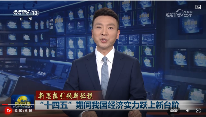 央视网消息(新闻联播):“十四五”时期,面对国内外形势深刻复杂变化,以习近平同志为核心的党中央领航掌舵、统揽全局,统筹国内国际两个大局,统筹发展和安全,坚持稳中求进工作总基调,推动我国经济顶压前行、向新向优发展,经济实力跃上新台阶,中国式现代化迈出新的坚实步伐。