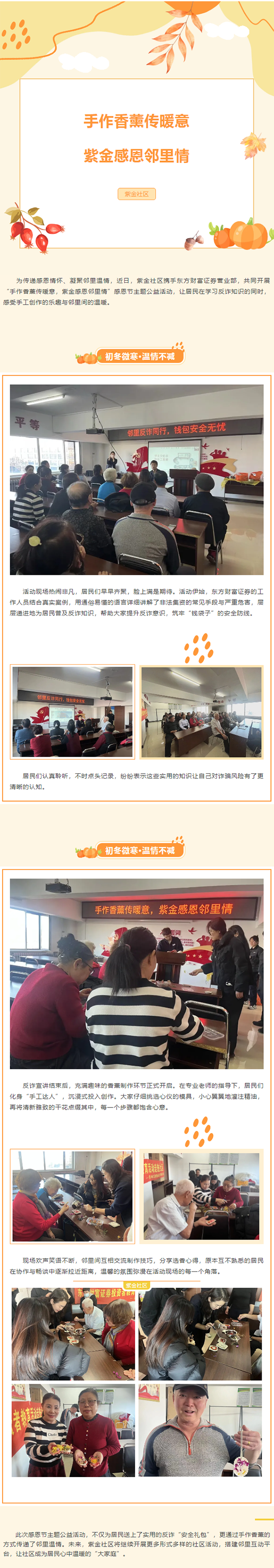 原标题: 手作香薰传暖意·紫金感恩邻里情——紫金社区这场感恩节活动超有爱