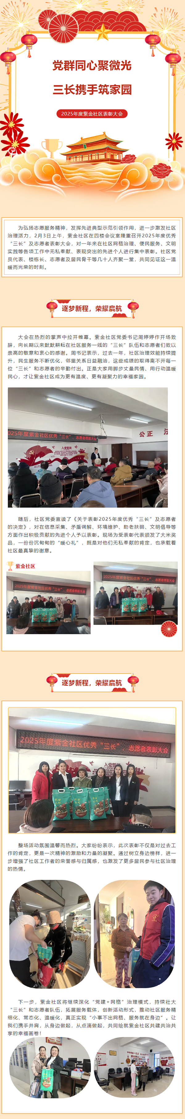 原标题: 党群同心聚微光·三长携手筑家园——紫金社区召开2025年度优秀“三长”、志愿者表彰大会