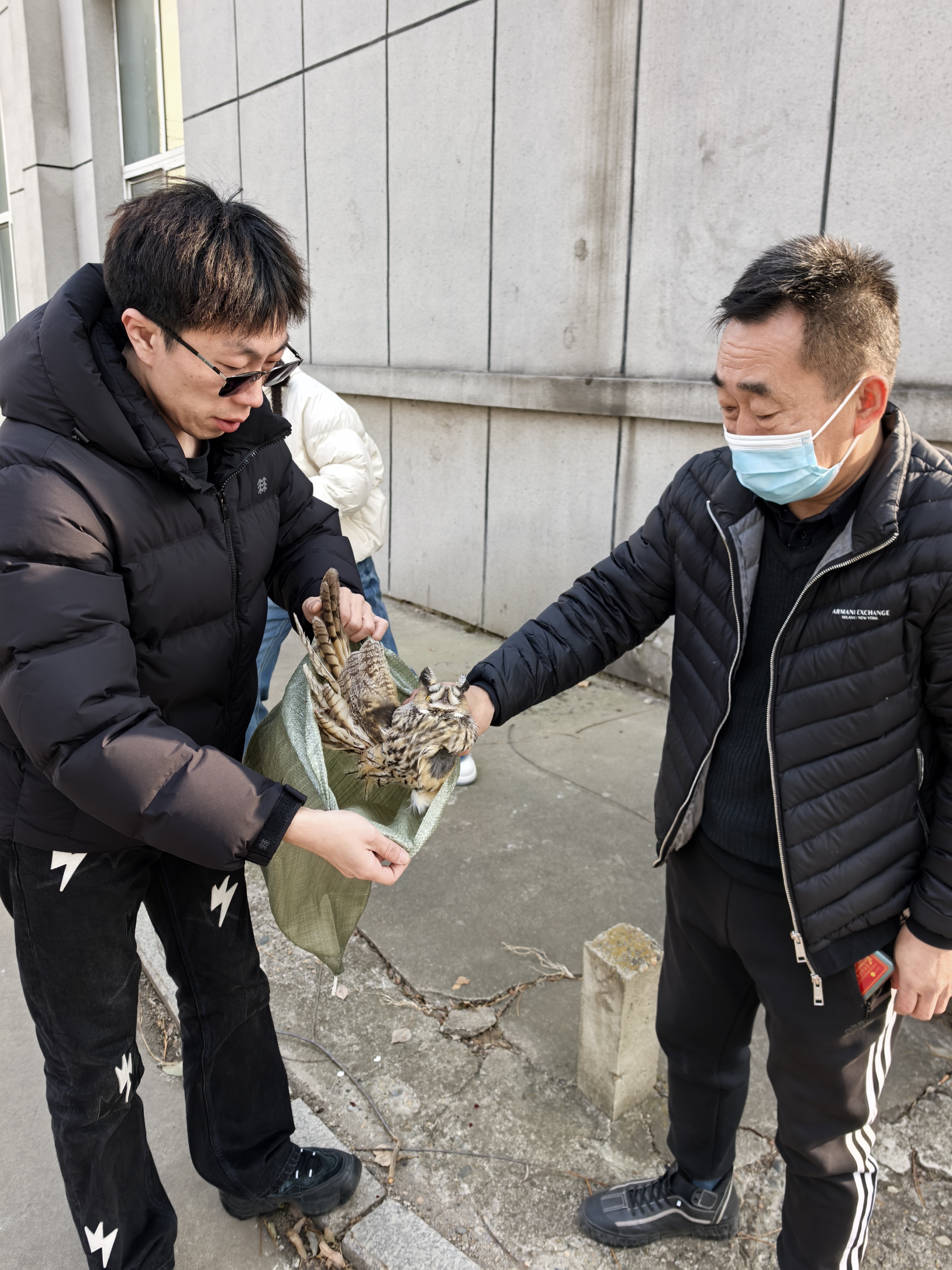 11 月 26 日上午,双飞社区接到居民反映,在原化工学院双吉校区内发现一只无法正常飞行的野生鸟类,疑似翅膀受伤。接报后,社区工作人员高度重视,第一时间赶赴现场。只见这只鸟类身形小巧,耳朵状羽毛十分显眼,正是长耳鸮。工作人员小心翼翼地将其带回社区安置,全程轻拿轻放,避免其受到二次伤害。
