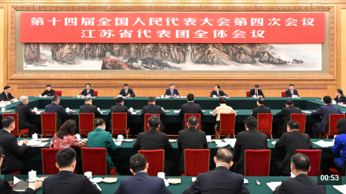 5日下午,中共中央总书记、国家主席、中央军委主席习近平参加他所在的十四届全国人大四次会议江苏代表团审议。