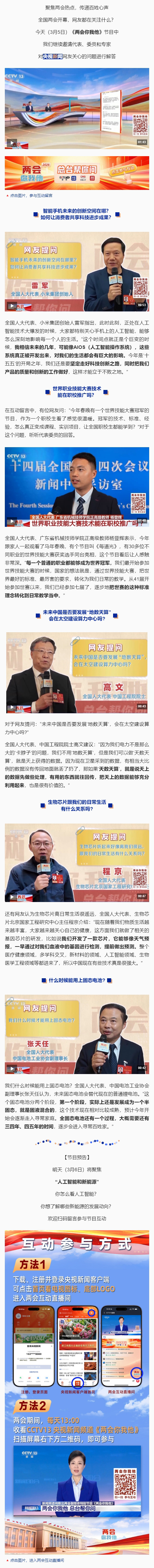 原标题: 两会你我他丨从科技到教育,代表委员回应网友这些关心
