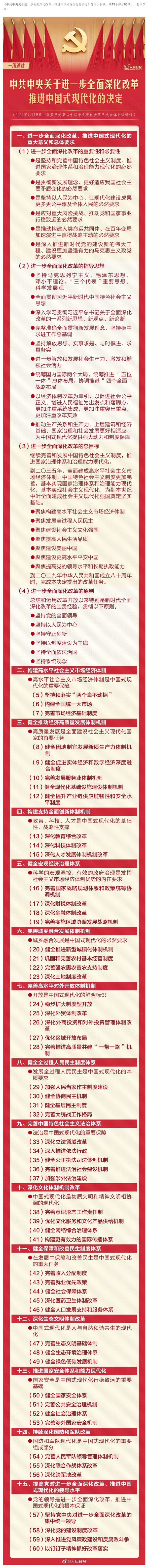 原标题: 一图速读三中全会《决定》60条