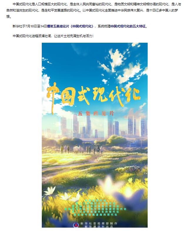 新华社推出五集政论片《中国式现代化》
