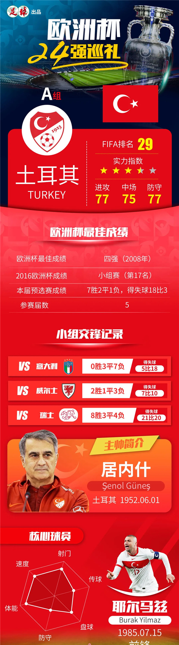 原标题: 【欧洲杯巡礼】A组-土耳其:星月军团 激情澎湃