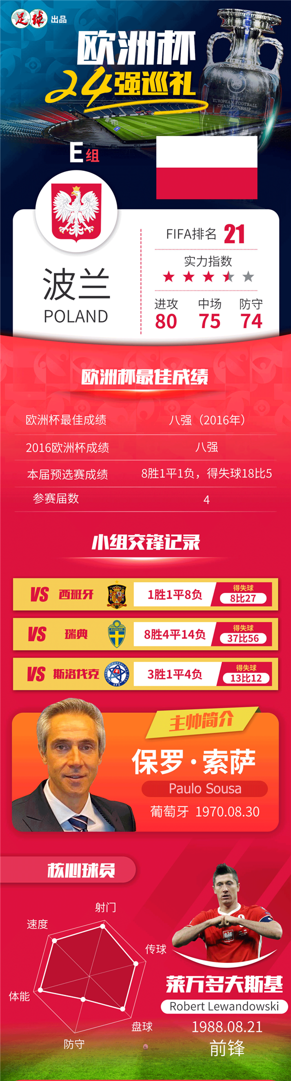 原标题: 【欧洲杯巡礼】E组-波兰:坐拥重磅进球机器