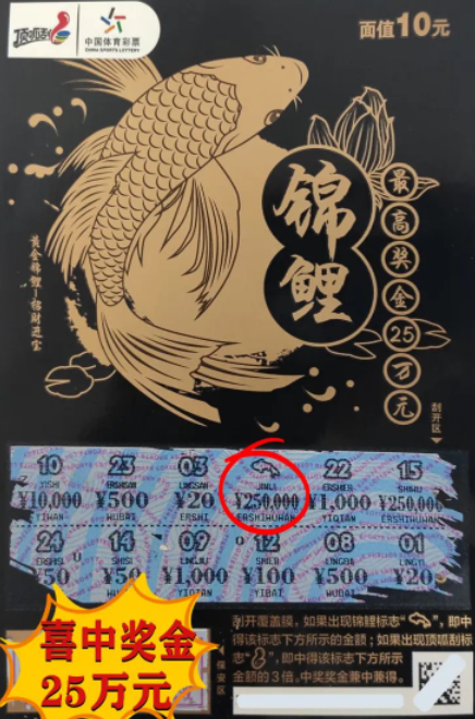 原标题: 吉林蛟河购彩者喜中体彩顶呱刮“锦鲤”25万元
