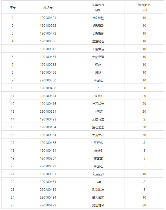本次停止销售的即开型体育彩票内容如下表: