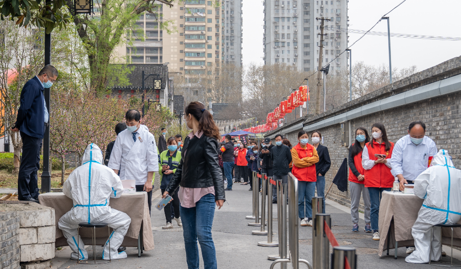 除了进行全面环境消杀,3月14日当天,熙南里还与朝天宫街道一起,针对公司员工、街区商户,以及在建项目工地进行了全员核酸检测。
