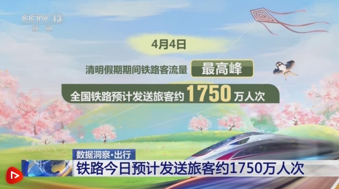 先来看铁路方面。国铁集团的消息显示,今天是清明假期期间铁路客流量的最高峰,预计发送旅客约1750万人次。