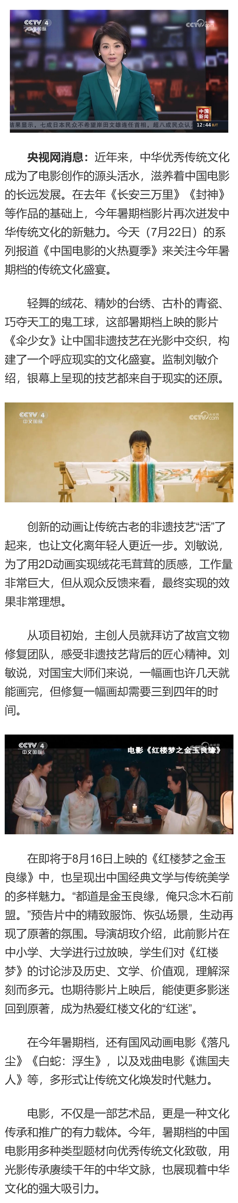 原标题: 中国电影迎来“火热”夏季 多题材致敬优秀传统文化